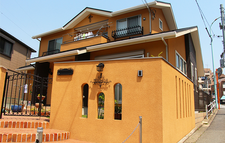 交差点の角地で、車と人通りの多いM様邸。セミクローズスタイルをご希望頂きました。
